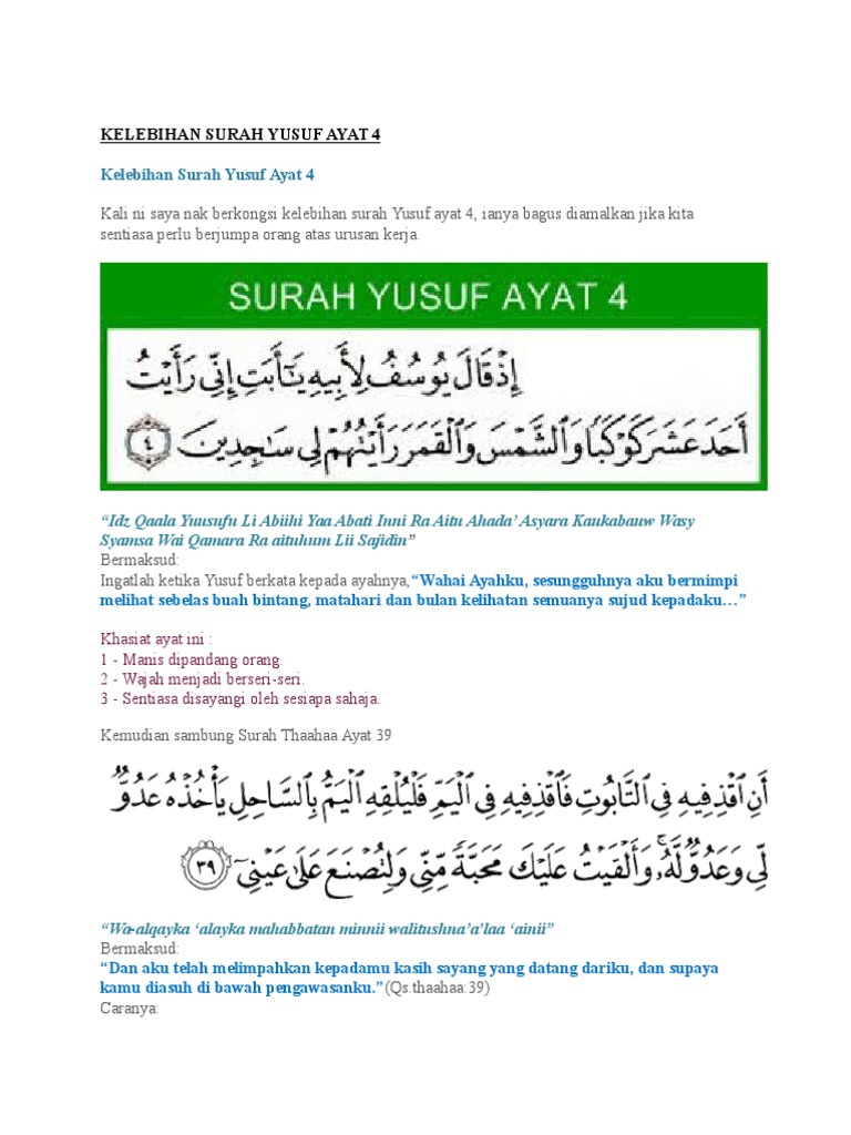 Kelebihan Surah Yusuf Ayat 4 Pdf