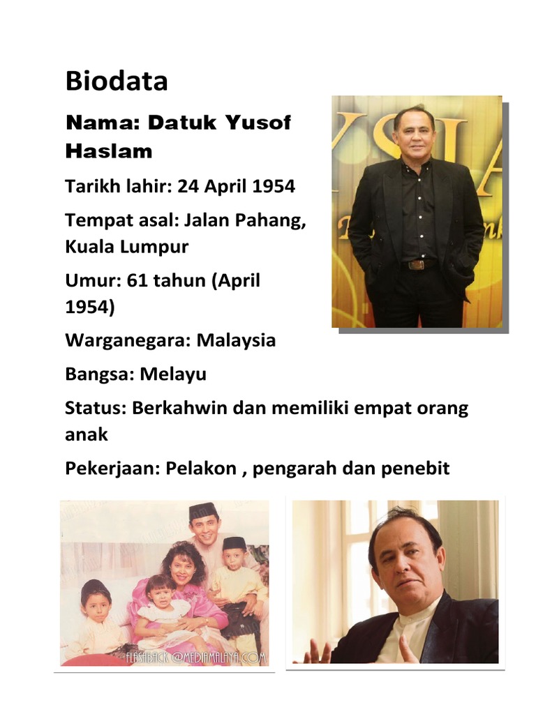 October 2014 Biodata Datuk Yusof Haslam Penerbit Skop Productions. SHAH ALAM - Meskipun kini bergelar pengarah dan penerbit filem tersohor perjalanan Datuk Dr Yusof Haslam untuk sampai ke tahap sekarang bukanlah indah seperti yang disangka. Yusof Haslam Biodata Gambar Rumah Banglo Mewah Dipecah.